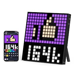 【Meet Pixoo-16】 The Pixoo-16 Clock isn't just any clock. Featuring a 16x16 LED panel capable of showcasing an astonishing 16 million RGB colors, it transitions from a unique digital clock to dynamic GIF animations and pixel art, crafting a visual feast for homes, offices, and gaming rooms. 【Versatility Beyond Imagination】 A true master of time management, it functions as an alarm clock, scheduler, message board, and a way to mark special occasions. With added features like a countdown timer, stopwatch, scoreboard, Music Visualizer and noise detection, the Pixoo-16 brings added color and innovation to daily life. 【Intelligent WiFi Connectivity】Connecting via WiFi not only ensures accurate time, but also allows you to control it remotely, sending animations and adjusting the real-time counter display anytime, anywhere. At the same time you can use this led clock panel to get and present online information, such as presenting stock exchange rates, social media followers and personal gaming data! 【Personalized Pixel Artistry】 Using the dedicated Divoom app designed for Pixoo-16, select or craft your animations, texts, and patterns. Whether it's a welcome message, festive celebrations, or shop decor, you have the freedom to customize the display to your taste.In addition, the Divoom App has a huge gallery and community where you can download and share your drawings, as well as communicate and interact with pixel art enthusiasts from around the world. 【Perfect Gift】The led clock retro matte black design complements any setting – be it a home, office, store, or café. With both a desktop stand and wall-mounting options, it meets various decorative needs. Gift it for occasions like Christmas, Halloween, birthdays, or simply surprise someone special.