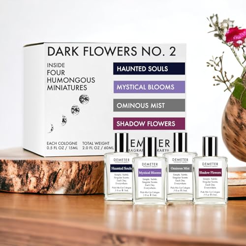 DEMETER Dark Flowers No. 2 Humongous Miniature Set of 4 Colognes, Haunted Souls - Mystical Blooms - Shadow Flowers - Ominous Mist, Perfumes for Women, 0.5 Oz Each