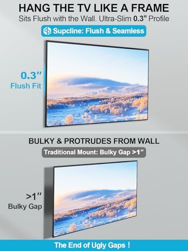 - Simplicity Meets the Slimmest Design: The slimmest low profile TV wall mount (0.3")—70% thinner than standard mounts (1"). Your TV sits almost flush, creating a picture-like display that blends into your space. No gaps, just minimalist elegance.(Only for TV with flat back, not for TV with uneven back or no holes),