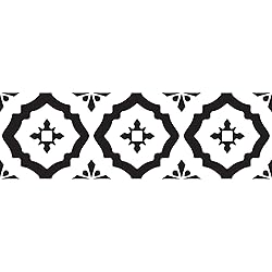 Black and white patterned-porcelain-inspired peel and stick stair stripe decal Stair stripes are peel and stick, repositionable, and always removable Update your stairs in minutes Can also be used for creating a backsplash or other tile surface Stripes are 6.5-in wide and 144-in long Measures 144in x 6.5in when assembled Printed on a safe, high quality material that is free of harmful chemicals like phthalates and lead Reuse from one space to the next Perfect for both renters and homeowners