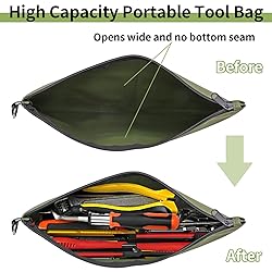 Premium Material: This tool pouch is made of heavy-duty 600D polyester with excellent workmanship, and waterproof lining, which is more wear-resistant than canvas pouch. The high-quality metal zipper is not easy to break and opens and closes smoothly Large Capacity & 3 Different Colors: The tool pouch bag measures 12.6 x 7 inches, with enough space to organize tools. Keep your tools safe and help you work efficiently. 3 different colors of small tool bags, to help you find what you need quickly Moisture-Resistant & Portable Design: This small tool bag with durable waterproof lining, provides excellent protection for your tools and keeps items dry. The tool pouch comes with a carabiner clip, you can hang it on your belt, car, home, or anywhere Multifunctional Storage: This utility zipper bag can store different sizes of tools, such as pliers, car repair tools, daily carry items, miscellaneous small parts, etc. It can also be used as an electronics accessories bag, pencil bag Service Guarantee: Customer satisfaction is our top priority. If you have any problem with our small tool bag, please let us know, and we will help you in time