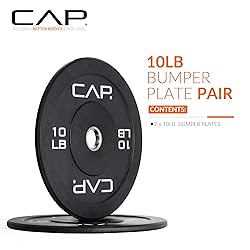 WHAT’S INCLUDED – TWO 10-pound Budget bumper weight plates in black; Designed to accommodate Olympic barbells (with 2-inch center hole) CONSTRUCTION – Proprietary manufactoring method coated in virgin and recycled rubber with a reinforced steelhub; All weights are uniform in diameter; 30-day manufacturer FEATURES – CAP's Proprietary construction offers a balanced weight; Rubber coating prevents damage to equipment; Steel insert offers a secure fit and prevent damage to the bars. VERSATILE – Extremely durable design makes these great for any home gym; Add weight plates to any fitness routine to increase calorie burn and muscle mass. **For home use only. TRUST – Trust experience. CAP has been a pioneer in the fitness industry for over 30 years and has locations worldwide. Chances are, if you have ever worked out before you have used a CAP product.
