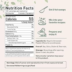 Micro Ingredients offers Organic Certified food-grade Arrowroot Powder, 5-pound bulk supply, 151 servings per pouch, 2 scoop serving size of 15g pure Arrowroot. A finely ground starch and flour all-purpose powder that is a great substitute for naturally thickening and texturizing gluten-free baking and cooking recipes. Sourced from authentic Maranta arundinacea, this Arrowroot Powder is a versatile kitchen staple, offering a healthier alternative to cornstarch and other flours while being more easily digested. Enjoy a versatile starch and flour substitute that is perfect for enhancing soups, sauces, gravies, cookies, cakes, bread, tortillas, pastas, or crackers. Non-GMO ingredients, free of soy, dairy, gluten, fillers, preservatives, flavors, and tree nuts. 3rd party lab tested to provide a product that is safe, pure, and potent.