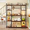 - AMPLE STORAGE SPACE - With multi-layer design, the 5-tier bakers rack features different-sized sections, a sturdy metal grid, and 11 S-shaped hooks, providing ample space and storage options for spice bottles, pots, dishes, microwaves, rice cookers, spoons, and much more! No matter what kitchen appliances you have, you can find suitable choices on this kitchen shelf pantry.