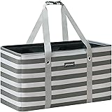 - PFFVRP Stand Up Extra Large Utility Tote Bag, Foldable Reusable Grocery Bags with Metal Wire Frame & Reinforced Bottom Board, Large Utility Tote for Shopping, Car Trunk, Beach Bag (Grey)