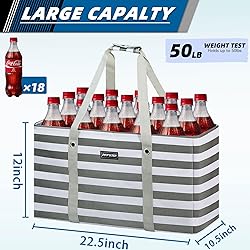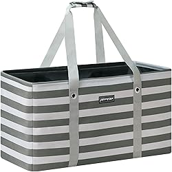 Polyester Imported EXTRA LARGE CAPACITY:The utility tote bag boasts an expansive design measuring 22.5 in* 10.5 in*12 in. It offers ample space to effortlessly accommodate an array of daily necessities, from groceries, fresh vegetables, and fruits to bottles, jars, toys, and clothing. Utilize this foldable, reusable grocery bags for shopping, contributing to the reduction of single-use plastic waste. ENHANCE LOAD BEARING:For added strength, the handle webbing is reinforced with a metal buckle, allowing the large tote bag to bear more weight. In addition, the handles are carefully designed with soft padding to provide extra comfort and support when carrying heavy items, ensuring a more comfortable carrying experience in the large utility tote. STAND UP REUSABLE GROCERY BAGS:The utility tote is ingeniously designed with a metal wire frame at the top opening, ensuring it remains open at all times. Pulling the utility tote bag out, it effortlessly stands on its own and maintains an upright position for an extended period. The bottom is thoughtfully crafted with a foldable bottom panel, preventing deformation even when loaded with items. FOLDABLE TOTE BAG:This extra-large utility tote bag is designed for easy storage when not in use, folding up neatly to save space. Inside, a convenient zippered pocket is available for storing small essentials like cell phones, keys, or cards. This thoughtful design offers ample space for larger items while keeping smaller belongings organized and easily accessible, making it a versatile and practical choice for various needs. MULTIPURPOSE UTILITY TOTE BAG:This tote bag offers an efficient storage solution for organizing in your home, office, and during travel, catering to a wide range of storage needs. Use it as a shopping basket, storage bag, pool or beach bag, gym tote, laundry carrier, toy organizer, overnight bag, picnic basket, and utility tote. Its adaptable nature makes it an ideal companion for an array of activities and storage requirements.