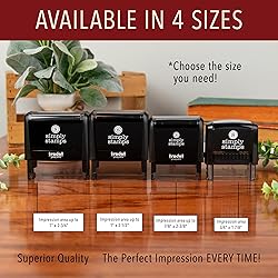 IMPRESSION SIZE: 3/4" x 1-7/8" (Medium) - One of our MOST POPULAR sizes! LASER ENGRAVING: Your text is meticulously laser-engraved into soft rubber, allowing for the creation of intricate and fine words, as well as small details. FLEXIBLE SIZING: Customers can choose from four unique stamp sizes, providing the option to personalize and tailor their stamp to their specific preferences and requirements. DIVERSE INK COLOR SELECTION: With a wide spectrum of seven vibrant non-toxic ink colors to choose from, you can create eye-catching and unique impressions that stand out on various surfaces. ECO-FRIENDLY CHOICE: The ink pad covers are crafted from environmentally responsible materials, with a commitment to sustainability by utilizing at least 95% recycled plastic.