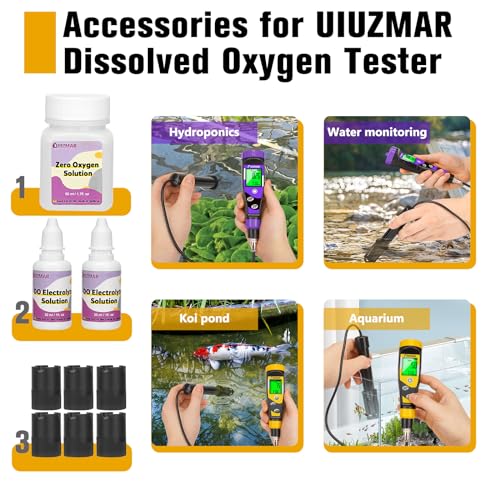 - [Ensures Accurate Readings] UIUZMAR Dissolved Oxygen Meter using replaceable oxygen-permeable PTFE membrane cap can always give accurate and consistent readings. This semipermeable membrane isolates the sensor elements from the environment but allows oxygen to enter. If any damage is evident (such as wrinkles or tears-holes), the membrane should be replaced.