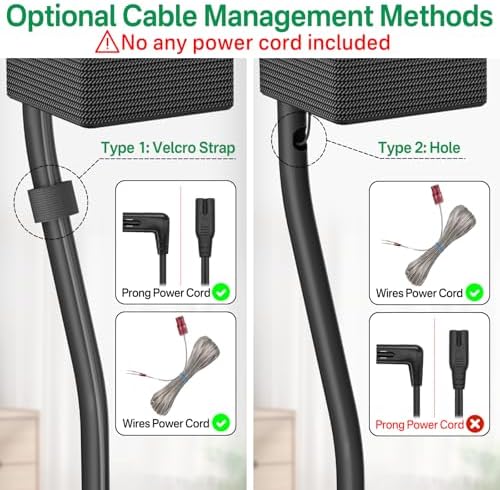 - Efficient Cable Management: The heavy-duty rear speaker stands for Samsung feature 2 cable management options. Allows you to hide the speaker cables, maintaining a clean and organized appearance to enhance room decor. Additionally, for speakers with thicker cables, the included velcro cable straps provide an extra management solution. Securely fasten thicker wires to the stand with these straps for an orderly arrangement and a clutter-free visual experience.