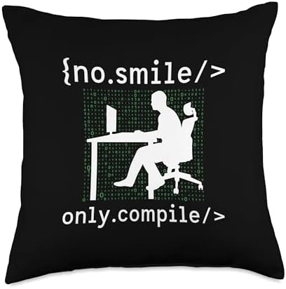 Job Programming Developing It Software Developer No Smile Only Compile Sayings Coder Programmer Coding Throw Pillow, 18x18, Multicolor
