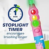 INCLUDES: 1 Firefly Peppa Pig themed Ready Go toothbrush with built-in light up timer and battery ENCOURAGE BRUSHING: The light up timer encourages proper brushing for your child by flashing for 1 minute, the dentist recommended time for properly cleaning the upper and the lower teeth PREMIUM BRISTLES: With premium soft bristles designed especially for little ones, this light up toothbrush for kids gently brushes away plaque, helping prevent gum disease and tooth decay EASY STORAGE: Your child's light up toothbrush comes with a less mess suction cup bottom for convenient standup storage and a cleaner bathroom, making organization simple DENTIST RECOMMEND: Dentists recommend brushing your child's teeth for 2 minutes, twice per day for proper oral care, resulting in healthy teeth and brighter smiles