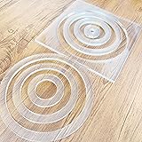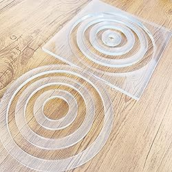 Materials: high quality clear acrylic The rings are 1/2" wide and the outside dimensions of each ring are: 6.5", 5.5", 4.5", 3.5", 2.5’’, 1.5" The Template is 7.875" wide by 7.875" tall This template is laser cut from sheets of 1/4’’ clear acrylic. It is the perfect tool for using as a router glide or tracing These laser cut acrylic circles template are perfect for customizing charcuterie boards and other woodworking projects