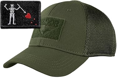 A great Condor Tactical Cap (Fitted Style) with breathable great looking mesh back. 2"x3" sized front Blackbeard flag patch Patches Made In USA: 100% Embroidery with hook-and-loop style fastener compatible with Velcro backing Condor Outdoor Fitted Flex model (imported) Mesh-Back 6-panel flexible jersey fitted material