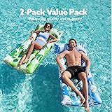 - 2 PACK VALUE PACK: Double the joy with our exclusive set of 2 inflatable pool loungers, featuring vibrant blue and green designs for an unmatched poolside experience. COMFORTABLE HEAD SUPPORT: Sink into serene comfort with built-in head support, allowing you to unwind and enjoy a blissful lounging experience on our inflatable pool recliners. WATER FLOW VENTS: Keep cool and refreshed with strategically placed water flow vents, ensuring a constant stream of water for a soothing and enjoyable time in the pool. BUOYANT AND STABLE: Experience worry-free relaxation with our buoyant and stable design, offering a secure and comfortable float without the risk of tipping or instability. QUICK INFLATION AND DEFLATION: Spend more time enjoying the water and less time preparing, thanks to our loungers' quick inflation and deflation feature, making setup a breeze. DURABLE MATERIALS: Crafted from high-quality materials, our pool loungers are designed for durability, providing a reliable and long-lasting solution for your poolside leisure. PORTABLE AND COMPACT: Take your loungers with their portable and compact design when deflated, perfect for beach trips, pool parties, and vacations. EASY STORAGE: Effortlessly store your loungers after use, as they deflate to a compact size, making them a convenient addition to your pool or beach essentials.