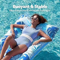 2 PACK VALUE PACK: Double the joy with our exclusive set of 2 inflatable pool loungers, featuring vibrant blue and green designs for an unmatched poolside experience. COMFORTABLE HEAD SUPPORT: Sink into serene comfort with built-in head support, allowing you to unwind and enjoy a blissful lounging experience on our inflatable pool recliners. WATER FLOW VENTS: Refreshed with strategically placed water flow vents, ensuring a constant stream of water for a soothing and enjoyable time in the pool. BUOYANT AND STABLE: Experience worry-free relaxation with our buoyant and stable design, offering a secure and comfortable float without the risk of tipping or instability. DURABLE MATERIALS: Crafted from high-quality materials, our pool loungers are designed for durability, providing a reliable and long-lasting solution for your poolside leisure.
