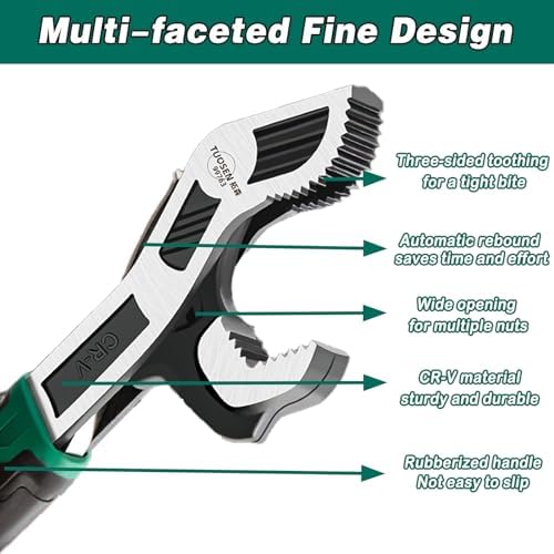 - 【CONVENIENT AND TIME-SAVING】This quick wrench uses a self-locking feature that is easy to use and allows the average adult Open jaws single-handed to lock bolts. Self-adjusting jaws: large capacity 0.6"-1.38" (15-35mm), small capacity 0.28" - 0.6" (7-15mm). You can replace all metric and standard wrenches between these sizes!