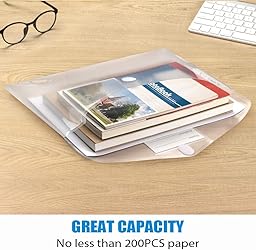 Easy Storage: Our plastic pouch is portable to keep your items organized and help you sort the clutter, the envelopes bags can be used at school, home, work, office travel, and business trip. Transparent Envelopes & Large Capacity: It’s easy to organize and distinguish your paper with 100% clear file folders. The envelope folder size is 13.25 x 9.25 inches, it will hold no less than 200 sheets of Letter Size papers Premium Quality & Thickness Upgraded: Study PP material plastic and waterproof envelope folder with upgraded thickness to prevent tearing for study using and holding your documents or other items safe. Design with Hook & Loop Closure and Label Pocket: High-quality translucent document bag with hook & loop closure, easy and convenient to take and store lightweight things, and study to last long after multiple repeats. Plastic Envelopes have a pocket for labels to distinguish documents easily. Easy Storage: Our plastic pouch is portable to keep your items organized and help you sort the clutter, the envelopes bags can be used at school, home, work, office, travel, and business trip. Outside mini label pocket helps classify and identify your document easily.