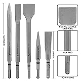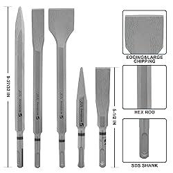 【MATERIAL】Using YG8C hard alloy tip and hard alloy steel body. A sturdy and durable head is the ideal choice for high impact applications. Chipping away brick, tile, mortar, concrete and other tough materials easily. 【SPECIFICATIONS】13 drills bits with 3/16", 1/4", 5/16", 3/8", 1/2", 9/16", 5/8" , 1 Point Chisel, 2 Flat Chisel and 1 U-groove Chisel, and one storage case(11-39/64“L x 9”W x 2-13/64“H). 【WIDELY APPLICABLE】Rotating hammer drills can generate stronger impact force, enabling effective and precise drilling of holes in concrete, stones, and all types of masonry, for setting concrete anchors and self tapping screws and other fasteners. 【DESIGN】The SDS-PLUS handle is suitable for most rotary hammer drills on the market, meeting most of your needs. The SDS chisel is paired with an electric hammer drill bit, which can drill holes, cut, and chisel grooves in concrete, bricks, walls, and other parts. 【SATISFACTION GUARANTEED】We stand behind the quality of our product. If you have any problems or are not satisfied with our metric drill bit set, please feel free to contact WildBossy for assistance.