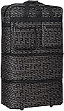 Material: 600D Polyester Reinforcing strap. Comfort-grip carry handle. Collapses to 4" D. when not in use. Sturdy 360° swivel wheels for easy rolling. The bag body can be expanded by zippers to three levels and three layers are foldable.