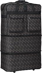 - Material: 600D Polyester Reinforcing strap. Comfort-grip carry handle. Collapses to 4" D. when not in use. Sturdy 360° swivel wheels for easy rolling. The bag body can be expanded by zippers to three levels and three layers are foldable.