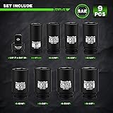 ✅【HIGH DURABILITY】Made of forged premium chrome molybdenum steel with a corrosion-resistant black phosphate finish to handle extreme levels of impact and torque changes. ✅【SET INCLUDES】This 9-piece set includes 6-Point SAE: 1", 1-1/16", 1-1/8", 1-1/4",1-5/16",1-3/8",1-7/16" 1-1/2" with a 1/2" F to 3/4" M adapter. This 3/4" impact socket set is designed for use with impact wrenches, each socket is used to remove tough nuts and bolts on larger vehicles. ✅【6-POINT DESIGN】The impact socket set features a 6-point, high-torque design that contacts and grips the stronger flat sides of the nut or bolt head, not the weaker corners. ✅【DUAL MARKINGS】The markings on the sockets are nice high contrast and easy to read. ✅【ORGANIZED CASE】Come with a heavy duty storage case,making it easy to store and transport to different job sites or workspaces. All TecoTek Tools meet or exceed ANSI performance standards. It comes with 1 year quality guarantee.