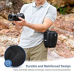 Wide Compatibility: Store, transport and protect your SLR camera from moisture, dirt and dust with this hard shell camera case. The external dimensions of this case is 6.7 x 5.0 x 7.9inches (W x H x D), compatible with a SLR camera with lens within 6.4 x 4.5 x 7.5inches (W x H x D), such as Canon EOS R100, R50, R10, R8, R7, R6 Mark III, R6 Mark II, R6, R5 C, R5, RP, R, Nikon Z50, Z30, Z f, Z fc, Z8, Z7 II, Z7, Z6 II, Z6, Z5, Sony A7 IV, A7 III, A7R V, A7R IV, Fujifilm X-T5, X-T4, X-T30 II, X-T30, X-S20, X-H2. Hard Shell Protection: The camera pouch features a durable, EVA molded construction and soft detachable foam interior for enhanced impact and shock protection. Three Carrying Options: Carrying the pouch is made easy by its rubberized grab handle or belt loop that will leave you hands-free for other pursuits. Moreover, you can keep the neck strap connected when you unzip the closure and close the flap. Quick Access: The camera pouch is designed with dual zippers that allows your camera to be easily accessed. Use the hook and loop flap to store or retrieve your camera conveniently when the zippers are fully opened. Accessory Pocket: An interior zippered pocket provides a convenient space for accessories such as memory cards.