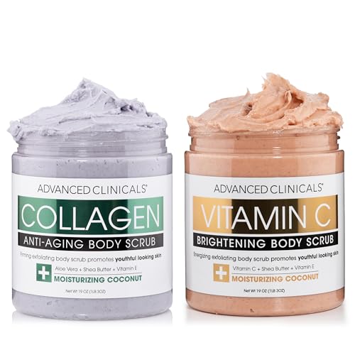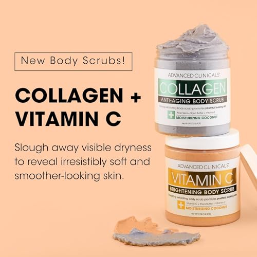 - DEAD SKIN REMOVER FOR BODY – If shedding off dry dead skin to reveal your natural smooth + soft exterior is what you have been wanting, then this Advanced Clinicals Vitamin C + Collagen Exfoliating Body Scrub 2PC Set is here to take your exfoliating skin care routine to the next level. Both delightfully scented body scrubs have been carefully formulated to be suitable for all skin types, even sensitive + acne prone skin and effectively helps remove dead skin cells, making room for new ones.