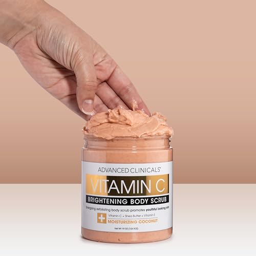 - MOISTURIZING EXFOLIANT – Unlike a traditional body wash or soap, our Advanced Clinicals Vitamin C & Collagen body scrubs have rich natural & moisturizing ingredients in it that help leave your skin feeling irresistibly smooth. If you are prone to constant sunburn or uneven tans, then this Vitamin C & Collagen infused scrub will also assist you in maintaining a more even skin tone. Apply a small amount onto hands or washcloth and massage on body in circular motions. Rinse off in warm water.