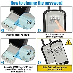 【Two Installation Methods - Door handle hung + Wall mounted】Lock box for keys with removable shackle, you can easily hang it anywhere, including door knob, metal fence, railing and pipe, no tools needed. The package contains 4 screws, 4 soft rubber screws, and user manual, you can also securely mount key lockbox on the wall of your home, office or any solid surface. 【Large Capacity-5 Keys Capacity 】Suitable for up to 5 house keys. Prevent forgetting to take keys when going out. By using this 4-digit key lock box that allows you or others access the key at any time, which perfectly fits for daily activities, friends, relatives, home services, business, or other emergency entry, etc; Perfect solution storing keys for Airbnb rentals. 【Wide Usage】The outdoor key lock box wall mount is small in size and compact in design, taking up less space, and is more convenient to use and keep key safe. Key storage box for house can be fixed to the wall for home, office, warehouse or elsewhere. Ideal for emergency entry, nursing home access, vacation homes, storing spare keys, cleaners. 【More Security】4-digit combination lock box, provides 10000 combinations. It's easy to reset the desired combination at any time. High security and strong anti-theft. The original password is 0000. Each lock box for keys with code comes with clear instructions on the packaging bag. Please note that once the password is reset, it is best to take a photo to record or it will have no way to open again. 【High Quality - Weatherproof】The metal body of key lock box for outside is made of weatherproof zinc alloy, flush-mount and impact-resistant access cover is impervious to hammering, sawing or prying. Confidently place the keys in Diyife portable combination lockbox.