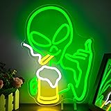 Green Alien Neon Sign for Wall Decor Dimmable Alien Beer Bar Neon Sign for Man Cave Neon Light Signs Led Neon Signs for Bedroom Light Up Sign for Hip Hop Party Game Room Beer Bar Pub Gift