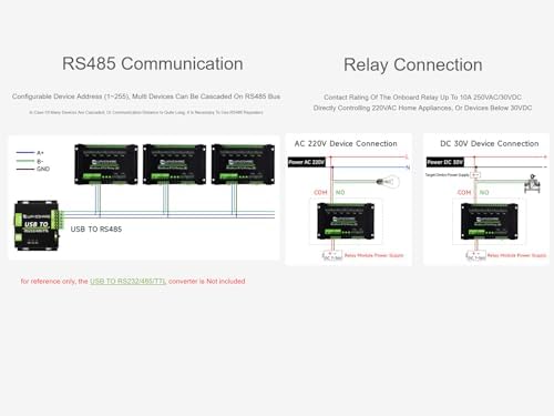 - Industrial Modbus RTU 8-ch Relay Module with RS485 interface, configurable device address (1~255), multi devices can be cascaded on RS485 bus; features flash-on, flash-off function, by passing argument to the command, it is possible to turn on the relay for a while and then close it automatically