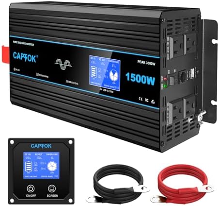 • Fácil de Usar: Inversor de onda senoidal pura CAPTOK de 1500W equipado con 4 tomas AC, 1 USB 5V 2.4A, 1 puerto tipo-c 30W, asegura un suministro de energía rápido para múltiples dispositivos al mismo tiempo, haciéndolo fácil de usar.
