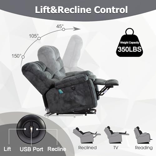 - 💺USB Charging Ports & Concealed Cup Holders: The lift chair has a USB outlet that keep your devices charging and dual side pockets for small items within reach, 2 concealed cup holders offer you wonderful home theatering experience. (Notes: The USB ports ONLY for low-power devices, such as iPhone, iPad.)