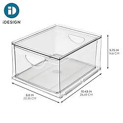 BATHROOM ORGANIZATION & STORAGE – Keep your counter or under-sink area organized with the iDesign Storage Drawer; Perfect for storing feminine products like pads and tampons, facial wipes, medicine storage, cotton balls, makeup, skincare jars, and more STACKABLE - Drawers stack vertically to conserve shelf space and help hide visual clutter; An integrated front handle makes it easy to stow things out of sight while providing a comfortable grip when opening and closing the drawer MULTI-PURPOSE ORGANIZER – Not just for the bathroom, use in the kitchen to store sponges and cleaning supplies, in the pantry to store boxed foods and dry goods, in the laundry room for detergent pods, in the office for pens, notepads, and other supplies QUALITY CONSTRUCTION - Made of BPA-free plastic that is shatter-resistant; EASY CARE - Clean with mild soap and water; Do not place in the dishwasher MADE TO FIT - Storage drawer measures 10.43" x 8.8" x 5.75" high / 26,49 cm x 22,35 cm x 14,6 cm
