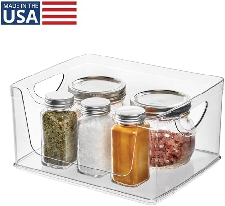 iDesign Stackable Open-Front Storage Bin with Handles for Kitchen, Clear, Made in USA
