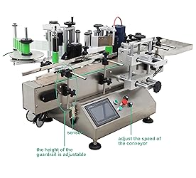 - Parameters Voltage: 110V/60Hz Power: 1000W Material: stainless steel Conveyor width: 3.93in(10cm) Conveyor belt length: 42.9in(109cm) Inner diameter of label roll: 2.95in(7.5cm) Outer diameter of label roll: 9.45in(24cm) Output speed: 20-30PCS/min (Depending on the bottle size and label length) Suitable bottle diameter: 0.78-4.72in(2-12cm) Label height: 0.98-5.9in(2.5-15cm) Label length: 0.98-13.78in(2.5-35cm) Precision: ±0.039in(1mm) Package size: 53*33*35inch Package weight: 326lbs