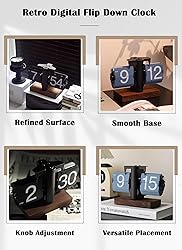 Knob Adjustment: The clock has a rotating knob on the right side of the minute area, allowing for easy and convenient time adjustment whenever desired. Easy to Read: The vintage flip down clock is designed for easy readability, featuring large numbers on the cards that can be easily seen even from a distance. Smooth Base: The clock's base is exquisitely crafted with smooth edges and no pointed teeth, ensuring a and comfortable user experience. Refined The clock features a delicate and exquisite surface, showcases a minimalist and unique design, highlight luxury high end aesthetic. Versatile Placement: Suitable for placement on a living room table, desktop, or any other preferred surface, seamlessly blending into various home decor .
