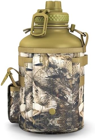Combat Canteen - 64oz Insulated Water Bottle with Paracord Handle, Stainless Steel Water Jug with Rugged Pockets for Keys, Wallet & Phone - Woodland Camo