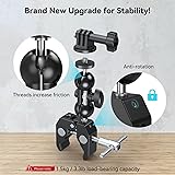 Sturdier Upgrade: Enhanced with non-slip threads and an anti-twist structure based on the classic design of the 1138 crab super clamp, supporting up to 1.5kg without loosening. Allows you to focus on content creation. Wide Compatibility: The 4373 Multi-Function dual ball head comes with clamps and 1/4"-20 screw to mount cameras, webcams, monitors, lights, microphones, action cameras, or any gear. Then, lock the clamps to the rod/tube/table/frame/tripod with the locking knob; no drilling required. More Accessories: We have added an adapter mount for GoPro and a phone clamp mount, suitable for more photographers and video producers. Whether you are shooting in a car or fixing your camera on a desktop, these essential accessories are perfect for the video era. Your Premium Choice: Crafted from aluminum and stainless steel, this super clamp endures years of testing. A product with a decade of sales history, chosen by approximately 300,000 users. We ensure satisfying after-sales service for your peace of mind. Packaging and Note: We use full kraft paper for packaging, no plastic. Inside the package are a super clamp, a phone clamp mount, and an action camera mount. Please note: When using in dynamic scenarios, ensure to attach the safety rope to prevent any accidental device drops!