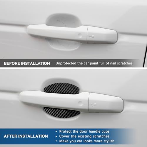 - ▶PREMIUM MATERIAL: Made of high quality TPU material and design with carbon fiber texture surface, Premium,Fashionable and Durable, Personalize the door and protect the door handle from scratching.