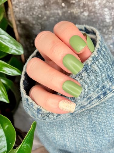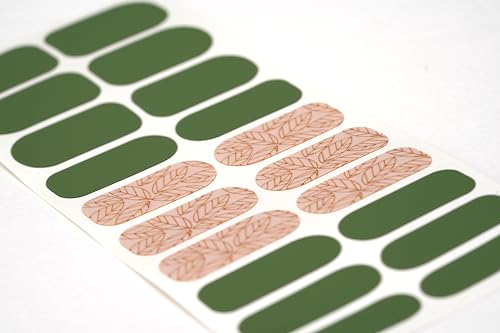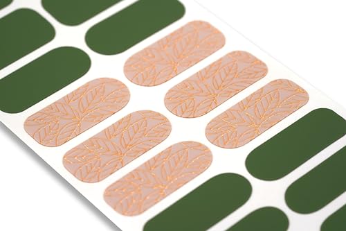 | 20 Exquisite Gel Nail Polish Strips w/Application Accessories - No UV/LED Lamp Required (Gold Foil Leaves & Green)