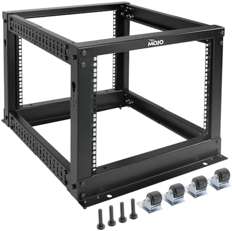 Tecmojo 8U Open Frame Server Rack,4-Post Adjustable Depth Rolling Network Rack for Computer/Data/AV/IT/Servers,Mobile Type