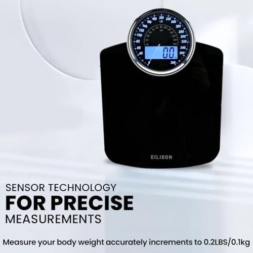 EILISON Highly Advance 2-in-1 Digital & Analog Weighing Scale for Body Weight-400lbs, 4 High Precison GX Sensor Accurate, Thick Tempered Glass, Extra Large Display (Black)
