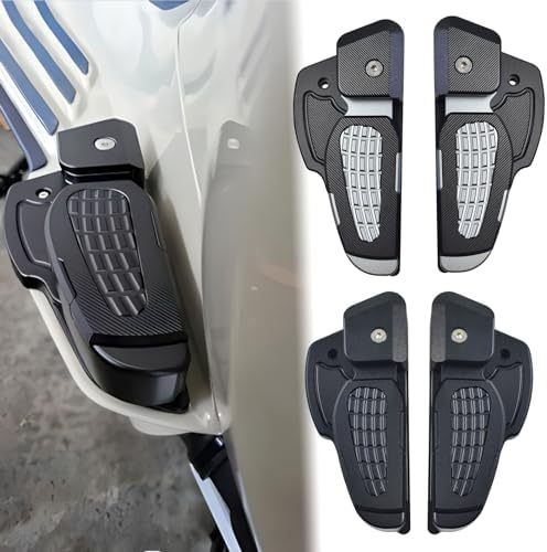 - 🌈[UNIQUE FEATURE]--►-Using the folding design that you can close the footrest when you are nit using it ,provide more flexible option for your riding. ►-Extra wide foot pedals deliver solid footing, and improve comfort. ►-Non-slip foot pedal surface with convex teeth provides a positive grip. ►-Add extraordinary style to your motorcycle with uniquely designed pedals.
