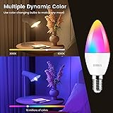 【Multi-Color & Dimmable Brightness】With over 16 million colors, our smart candelabra LED light bulbs can provide the perfect ambiance for any moment to match your unique preferences and moods. The brightness and color temperature (2700K-6500K) are both adjustable, and you can find the perfect balance between warmth and brightness 【Timer & Customized Scenes】Set up a personalized schedule using timers or countdowns to automate the on/off functions of the Alexa light bulbs at your desired times, serving as gentle reminders for waking up or winding down for sleep. With 16 million colors and multiple preset scene modes, you can customize your own scenes, allowing you to create the perfect ambiance for different occasions 【Energy Saving】Use our 5W (40W equivalent) E12 LED bulb to reduce your energy bill, saving up to 85% energy. The lifespan can last approximately 20,000 hours, ensuring long-lasting performance and minimizing the need for replacements. This makes them an environmentally conscious and cost-effective choice for illuminating your space 【APP Remote Control】No hub required – simply connect our E12 smart candelabra light bulbs to your home's 2.4GHz Wi-Fi network. Suitable for 100-240 volts, they enable easy remote control via the "Smart Life" app, whether you're at home or away. Create groups for these smart bulbs, allowing you to control them simultaneously with a single command. Enjoy the convenience of managing your lighting 【Hands-free Voice Control】These E12 smart LED bulbs can be voice-controlled by Alexa and Google Home Assistant. Whether you're immersed in a cozy movie or hosting a lively gathering, simply say your preferences, and watch as our candelabra color changing light bulb transforms the atmosphere to suit your command. Free your hands