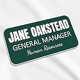 Custom Engraved Name Tags: These name tag badges provide ample room for three lines of centered text, catering to employees and individuals across all industries. Tailored to Your Aesthetic: With a selection of 13 different colors and 10 unique fonts, you can effortlessly craft a personalized name tag that aligns with your brand's identity or your personal style. Varied Sizes and Backing Options: Choose from two distinct sizes: 1.5 inches by 3 inches or 1 inch by 3 inches, and opt for either a magnetic or pin backing to suit your preferences. American Craftsmanship: Crafted in the United States, each personalized name tag is meticulously created using high-quality acrylic-based plastic and precision CO2 laser engraving. Highly Visible Etched Lettering: The text on these custom engraved name tags is deeply etched, ensuring excellent legibility even from a distance, facilitating easy identification for your customers and employees.