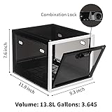 - This lockable box is large enough to easily store your usual dangerous medicines and eliminate the risk of accidental ingestion by children. It can also be used as a keeper for food,sweets, chocolates and drinks, allowing children to eat in moderation. The safe and secure material ensures no contamination of food. It can also be used as a safe deposit box for mobile phones and tablets to keep you focused while you work. The side is also designed with a charging hole to keep your electronics charged while they are locked away to keep them full of energy.The special design allows the boxes to be easily stacked, making it possible to use it as a sorting bin, saving space and keeping your room neat and organised. The transparent material allows you to easily identify the contents of the box, making it easy to find the items you want.A wide range of applications, home, office, car boot, gym, school, restaurant, etc. How to set a new password: Initial password 000 1: Open the box with the initial password 000 2: Find the lock button on the back of the lock and toggle the lock button to unlock it. 3: Set a new three-digit code and ensure that the number is in the middle straight line of the lock. 4: Toggle the lock button back to its original position again to keep it locked. PS: Please remember the new password, you will not be able to open the box without the new password.