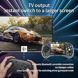【Anbernic RG ARC Single Linux system】RG ARC Single Linux system . Built-in128G SD Card 4541 games , it can support more than 20 kinds of games format . 【5G WIFI &4.2 Bluetooth & TV Output & Moonlight streaming】Built-in 2.4/5G WIFI 802.11a/b/g/n/ac , New generation of 5G WIFI technology , support 2 hosts to play online at the same time . Bluetooth 4.2 can connect gamepad , headset . Support Moonlight streaming that can play PC games smoothly . Dual 360-degree operation is really cool let the market Most portable game consoles on the market are prohibitive. Wow, this is crazy, this is a must-have item for kids, a wonderful retro game console. 【Upgrade RK3566 Chip】RG ARC game console use the RK3566 Quad-Core 64 bit Cortex-A55, Main frequency up to 1.8GHz , LPDDR4 1GB, which can solve the problem of frame dropping in the game, run the game perfectly, and make your game screen smoother. 【4.0 INCH IPS SCREEN】4.0-inch IPS full viewing angle, zero distance OCA full fit/ 640*480 , very clear display. Tempered glass, double protection with scratch proof and anti-fall, brings exciting gaming experience and better eye protection. 【3500MAH HIGH CAPACITY BATTERY】Built-in 3500mAh high capacity lithium battery for ultra-long standby time and battery life. Support up to 6 hours game playing. Support fast charging with USB Type-C cable. Brings lots of joy and happiness to you during a trip or a long journey.