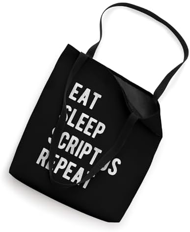 Dark JavaScript developer shirt with the words "Eat Sleep Script.js Repeat" for a hard working member of the web development team.