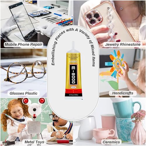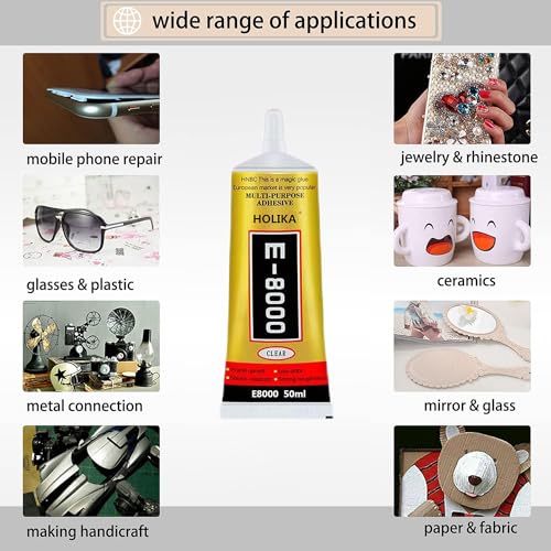 - Wide Application: E8000 is a new upgrade of b6000 and B7000, with more powerful functions and more environmental protection. This multipurpose craft glue is suitable for most surfaces and is ideal for jewelry, cell phones, glass, metal, plastic, rubber, toys, ceramics, leather, fiber, cloth, wood, nylon, silicone, paper, vinyl and other materials.